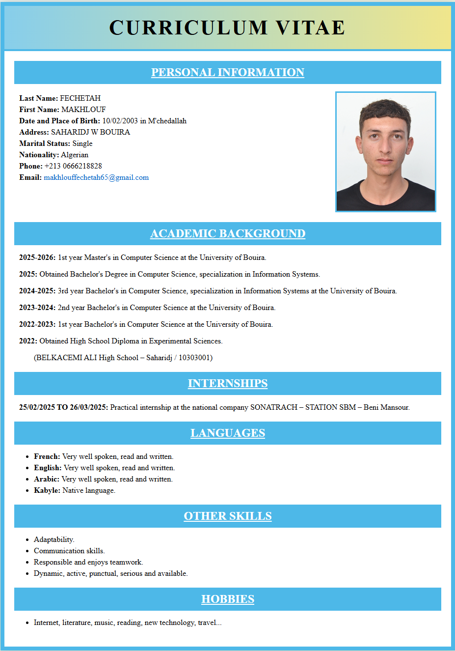 Master's student in Artificial Intelligence at the University of Bouira, Algeria.